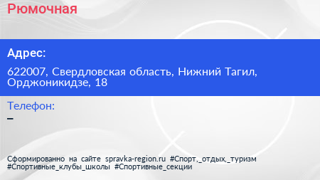 Рюмочная по адресу 622007, Свердловская область, Нижний Тагил, Орджоникидзе, 18 в дальнейшем Организация, размещена в следующих категориях: