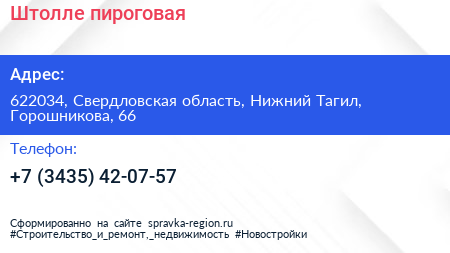 Адрес: Свердловская область, Нижний Тагил, Серова, 20