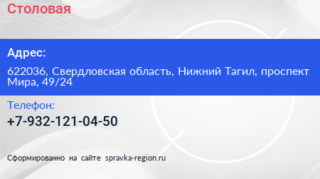 Столовая по адресу 622036, Свердловская область, Нижний Тагил, проспект Мира, 49/24 в дальнейшем Организация, размещена в следующих категориях:
