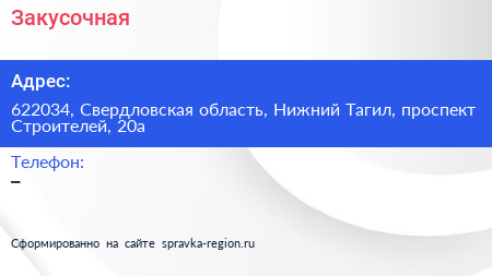 Закусочная по адресу 622034, Свердловская область, Нижний Тагил, проспект Строителей, 20а в дальнейшем Организация, размещена в следующих категориях: