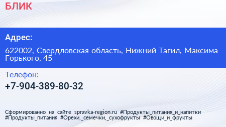 БЛИК по адресу 622002, Свердловская область, Нижний Тагил, Максима Горького, 45 в дальнейшем Организация, размещена в следующих категориях: