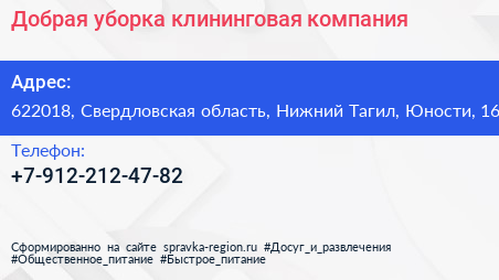 Добрая уборка, клининговая компания по адресу 622018, Свердловская область, Нижний Тагил, Юности, 16 в дальнейшем Организация, размещена в следующих категориях: