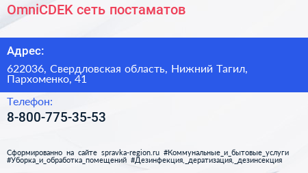 OmniCDEK, сеть постаматов по адресу 622036, Свердловская область, Нижний Тагил, Пархоменко, 41 в дальнейшем Организация, размещена в следующих категориях: