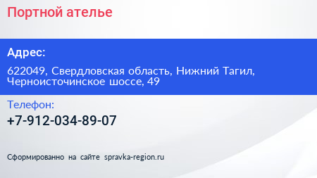 Портной, ателье по адресу 622049, Свердловская область, Нижний Тагил, Черноисточинское шоссе, 49 в дальнейшем Организация, размещена в следующих категориях: