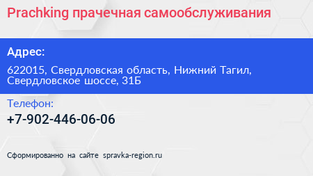 Prachking, прачечная самообслуживания по адресу 622015, Свердловская область, Нижний Тагил, Свердловское шоссе, 31Б в дальнейшем Организация, размещена в следующих категориях: