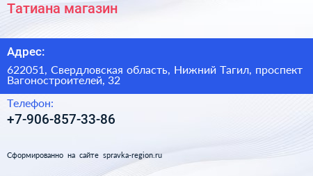 Татиана, магазин по адресу 622051, Свердловская область, Нижний Тагил, проспект Вагоностроителей, 32 в дальнейшем Организация, размещена в следующих категориях: