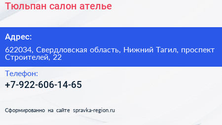 Тюльпан, салон-ателье по адресу 622034, Свердловская область, Нижний Тагил, проспект Строителей, 22 в дальнейшем Организация, размещена в следующих категориях: