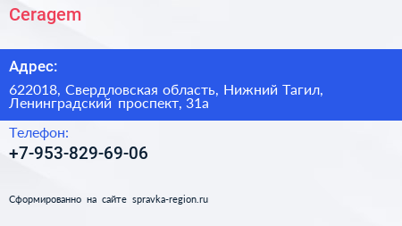 Ceragem по адресу 622018, Свердловская область, Нижний Тагил, Ленинградский проспект, 31а в дальнейшем Организация, размещена в следующих категориях: