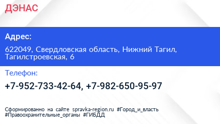 ДЭНАС по адресу 622049, Свердловская область, Нижний Тагил, Тагилстроевская, 6 в дальнейшем Организация, размещена в следующих категориях: