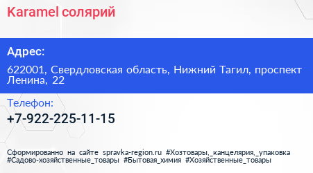 Karamel`, солярий по адресу 622001, Свердловская область, Нижний Тагил, проспект Ленина, 22 в дальнейшем Организация, размещена в следующих категориях: