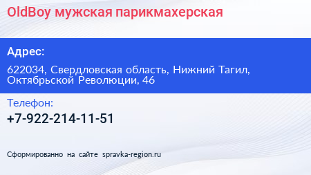 OldBoy, мужская парикмахерская по адресу 622034, Свердловская область, Нижний Тагил, Октябрьской Революции, 46 в дальнейшем Организация, размещена в следующих категориях: