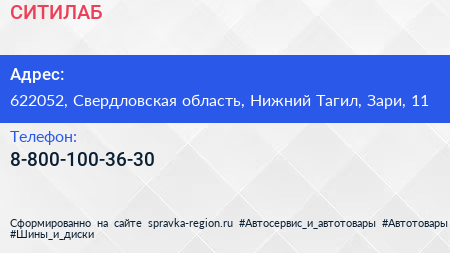 СИТИЛАБ по адресу 622052, Свердловская область, Нижний Тагил, Зари, 11 в дальнейшем Организация, размещена в следующих категориях: