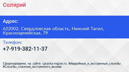 Солярий по адресу 622002, Свердловская область, Нижний Тагил, Красноармейская, 79 в дальнейшем Организация, размещена в следующих категориях: