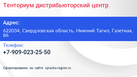 Тенториум, дистрибьюторский центр по адресу 622034, Свердловская область, Нижний Тагил, Газетная, 86 в дальнейшем Организация, размещена в следующих категориях: