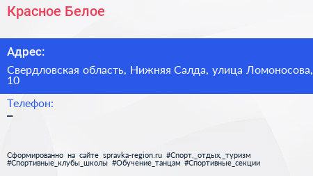 Красное & Белое по адресу Свердловская область, Нижняя Салда, улица Ломоносова, 10 в дальнейшем Организация, размещена в следующих категориях: