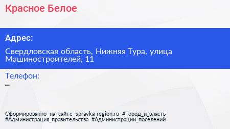 Красное & Белое по адресу Свердловская область, Нижняя Тура, улица Машиностроителей, 11 в дальнейшем Организация, размещена в следующих категориях: