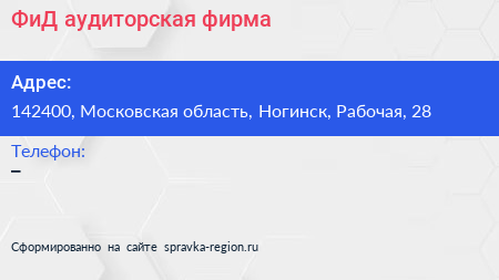 ФиД, аудиторская фирма по адресу 142400, Московская область, Ногинск, Рабочая, 28 в дальнейшем Организация, размещена в следующих категориях:
