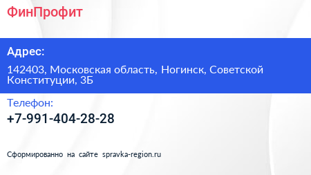 ФинПрофит по адресу 142403, Московская область, Ногинск, Советской Конституции, 3Б в дальнейшем Организация, размещена в следующих категориях: