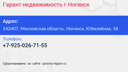 Гарант-недвижимость, г. Ногинск по адресу 142407, Московская область, Ногинск, Юбилейная, 18 в дальнейшем Организация, размещена в следующих категориях:
