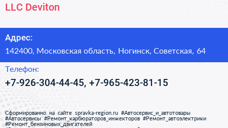LLC Deviton по адресу 142400, Московская область, Ногинск, Советская, 64 в дальнейшем Организация, размещена в следующих категориях: