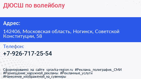 ДЮСШ по волейболу по адресу 142406, Московская область, Ногинск, Советской Конституции, 58 в дальнейшем Организация, размещена в следующих категориях: