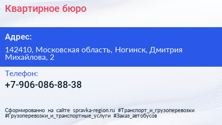 Квартирное бюро по адресу 142410, Московская область, Ногинск, Дмитрия Михайлова, 2 в дальнейшем Организация, размещена в следующих категориях: