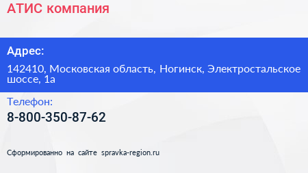 АТИС, компания по адресу 142410, Московская область, Ногинск, Электростальское шоссе, 1а в дальнейшем Организация, размещена в следующих категориях: