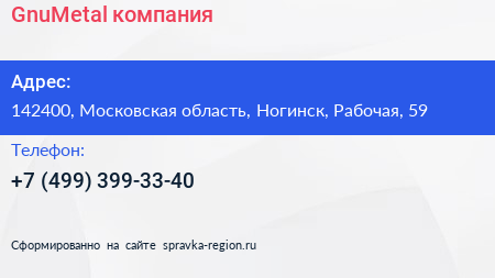 GnuMetal, компания по адресу 142400, Московская область, Ногинск, Рабочая, 59 в дальнейшем Организация, размещена в следующих категориях: