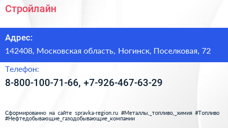 Стройлайн по адресу 142408, Московская область, Ногинск, Поселковая, 72 в дальнейшем Организация, размещена в следующих категориях: