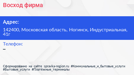 Восход, фирма по адресу 142400, Московская область, Ногинск, Индустриальная, 41г в дальнейшем Организация, размещена в следующих категориях: