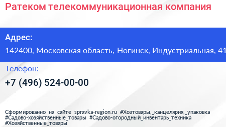 Ратеком, телекоммуникационная компания по адресу 142400, Московская область, Ногинск, Индустриальная, 41 в дальнейшем Организация, размещена в следующих категориях: