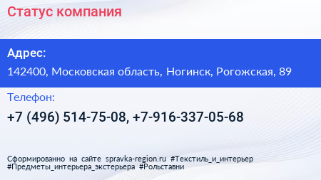 Статус, компания по адресу 142400, Московская область, Ногинск, Рогожская, 89 в дальнейшем Организация, размещена в следующих категориях: