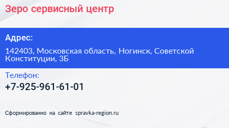 Зеро, сервисный центр по адресу 142403, Московская область, Ногинск, Советской Конституции, 3Б в дальнейшем Организация, размещена в следующих категориях: