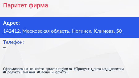 Паритет, фирма по адресу 142412, Московская область, Ногинск, Климова, 50 в дальнейшем Организация, размещена в следующих категориях: