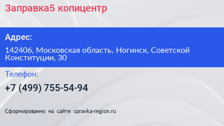 Заправка5, копицентр по адресу 142406, Московская область, Ногинск, Советской Конституции, 30 в дальнейшем Организация, размещена в следующих категориях: