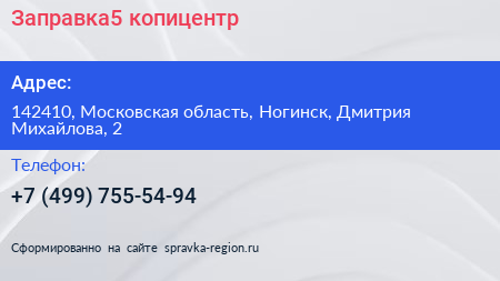 Заправка5, копицентр по адресу 142410, Московская область, Ногинск, Дмитрия Михайлова, 2 в дальнейшем Организация, размещена в следующих категориях: