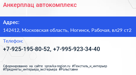 Анкерплац, автокомплекс по адресу 142412, Московская область, Ногинск, Рабочая, вл29 ст2 в дальнейшем Организация, размещена в следующих категориях:
