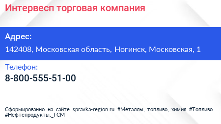 Интервесп, торговая компания по адресу 142408, Московская область, Ногинск, Московская, 1 в дальнейшем Организация, размещена в следующих категориях: