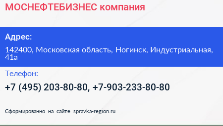 МОСНЕФТЕБИЗНЕС, компания по адресу 142400, Московская область, Ногинск, Индустриальная, 41а в дальнейшем Организация, размещена в следующих категориях: