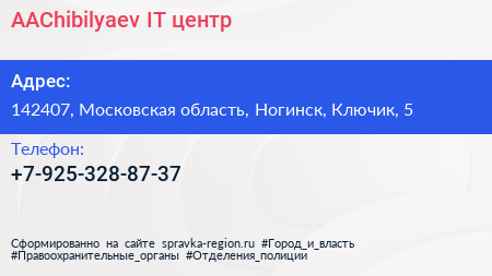 AAChibilyaev, IT-центр по адресу 142407, Московская область, Ногинск, Ключик, 5 в дальнейшем Организация, размещена в следующих категориях: