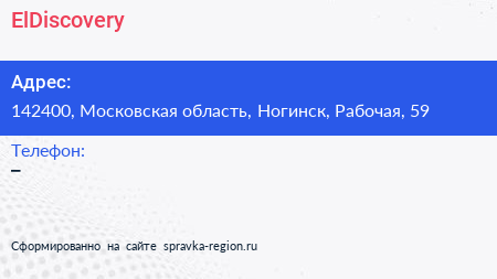 ElDiscovery по адресу 142400, Московская область, Ногинск, Рабочая, 59 в дальнейшем Организация, размещена в следующих категориях: