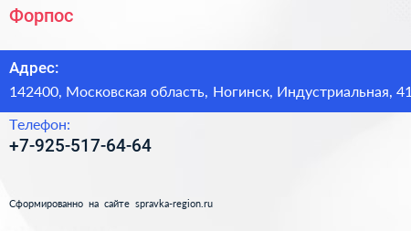 Форпос по адресу 142400, Московская область, Ногинск, Индустриальная, 41 в дальнейшем Организация, размещена в следующих категориях: