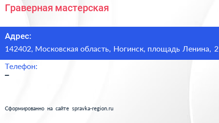 Граверная мастерская по адресу 142402, Московская область, Ногинск, площадь Ленина, 2 в дальнейшем Организация, размещена в следующих категориях: