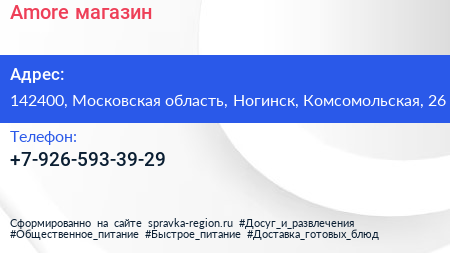 Amore, магазин по адресу 142400, Московская область, Ногинск, Комсомольская, 26 в дальнейшем Организация, размещена в следующих категориях: