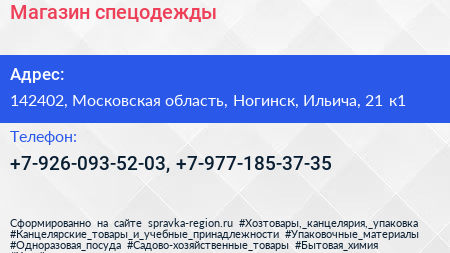 Магазин спецодежды по адресу 142402, Московская область, Ногинск, Ильича, 21 к1 в дальнейшем Организация, размещена в следующих категориях: