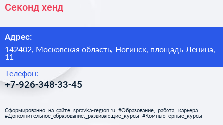 Секонд-хенд по адресу 142402, Московская область, Ногинск, площадь Ленина, 11 в дальнейшем Организация, размещена в следующих категориях: