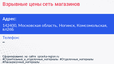 Взрывные цены, сеть магазинов по адресу 142400, Московская область, Ногинск, Комсомольская, вл26Б в дальнейшем Организация, размещена в следующих категориях: