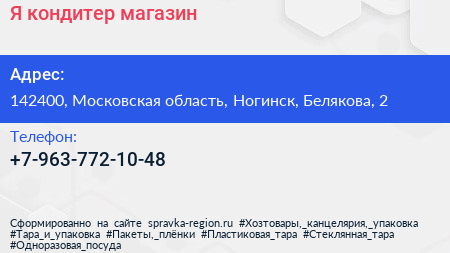 Я кондитер, магазин по адресу 142400, Московская область, Ногинск, Белякова, 2 в дальнейшем Организация, размещена в следующих категориях: