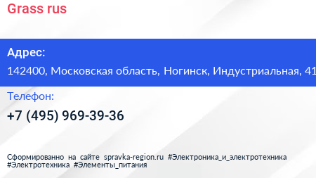 Grass-rus по адресу 142400, Московская область, Ногинск, Индустриальная, 41 в дальнейшем Организация, размещена в следующих категориях:
