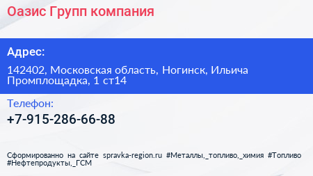 Оазис Групп, компания по адресу 142402, Московская область, Ногинск, Ильича Промплощадка, 1 ст14 в дальнейшем Организация, размещена в следующих категориях: